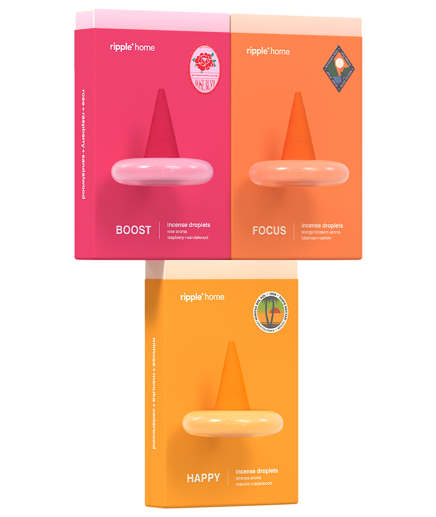 ripple⁺ droplets are made from a unique blend of handpicked botanicals. We’ve carefully selected resins and premium essentials oil to really sprinkle that extra love & attention.