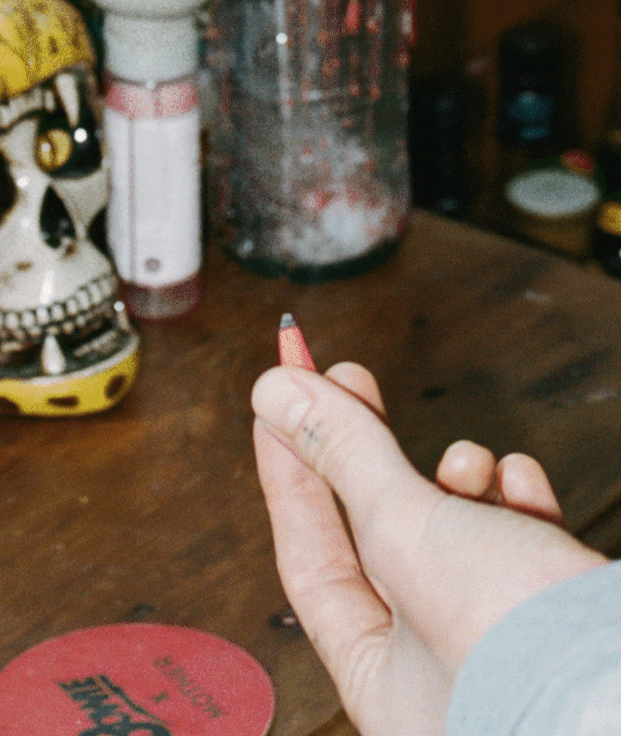 Place your droplet on top of the sea glass holder, grab your light, light the tip of your droplet and gently blow out after a few secs. Now, settle down & let the flame burn.