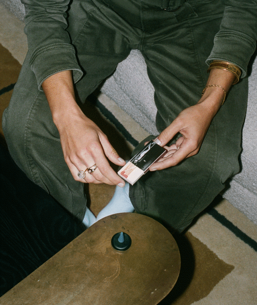Place your droplet on top of the sea glass holder, grab your light, light the tip of your droplet and gently blow out after a few secs. Now, settle down & let the flame burn.