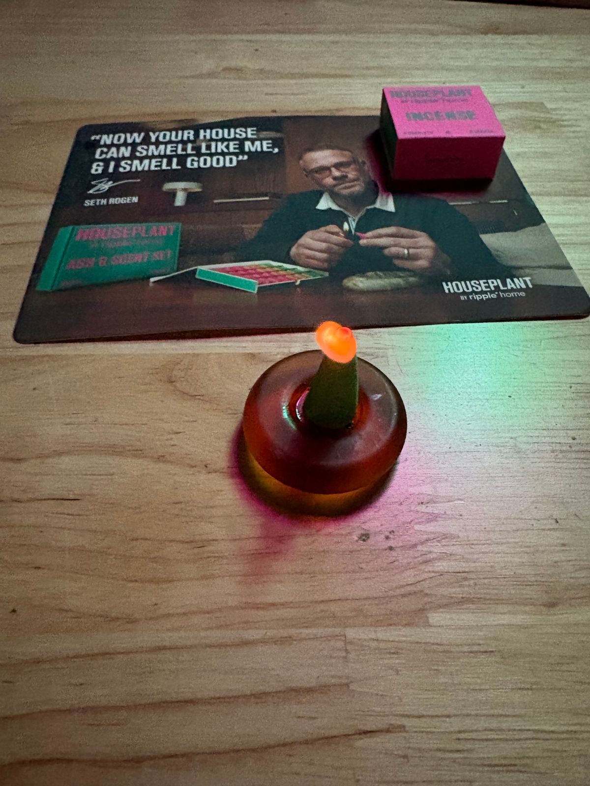 Place your droplet on top of the sea glass holder, grab your light, light the tip of your droplet and gently blow out after a few secs. Now, settle down & let the flame burn.