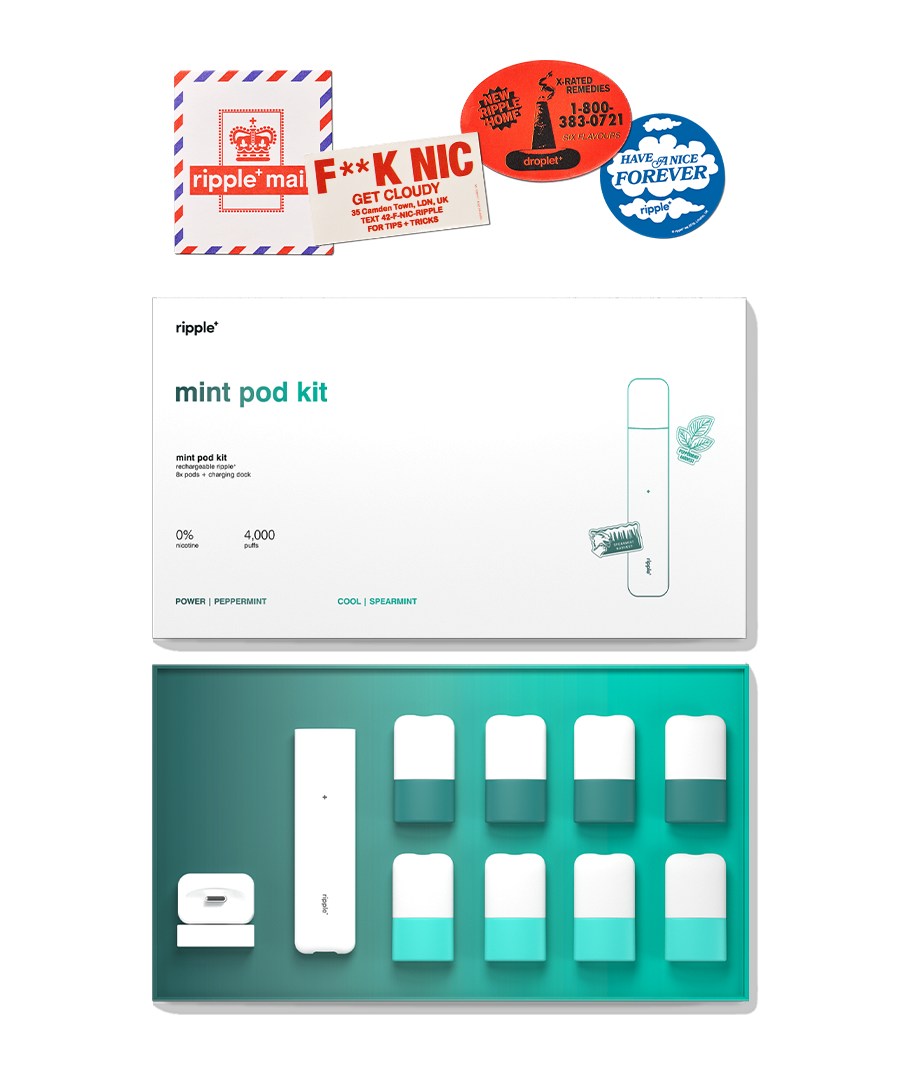 2 minty aromas, 1 rechargeable device, 8 pods, 4,000 puffs.