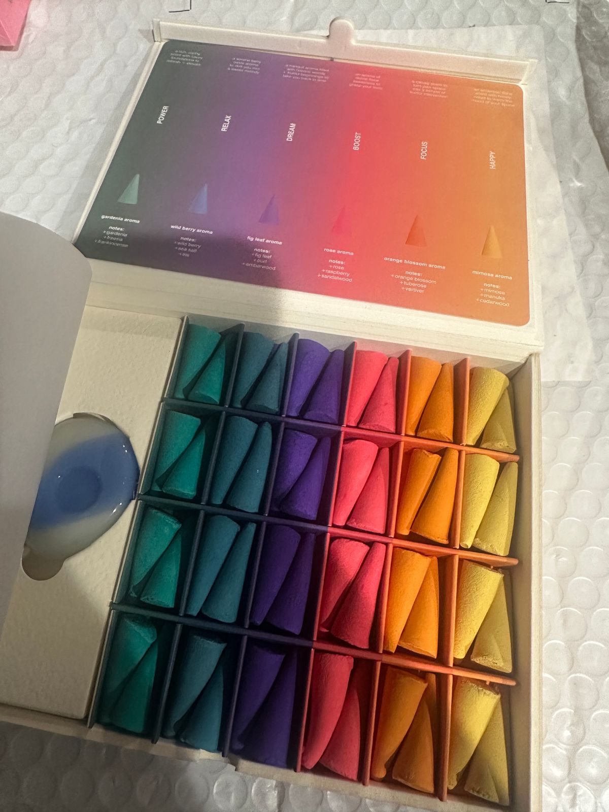 These incense droplets are amazing, I can’t stop burning them! I’ve never been a huge fan of incense and neither has my husband, but this set changed both of our minds and now we are hooked! The only thing I’d like to note is they do burn pretty quickly. Love the marble piece that comes with the set, highly recommend!